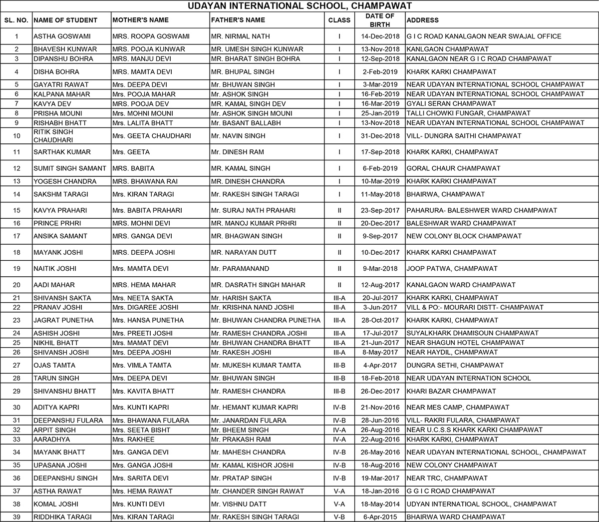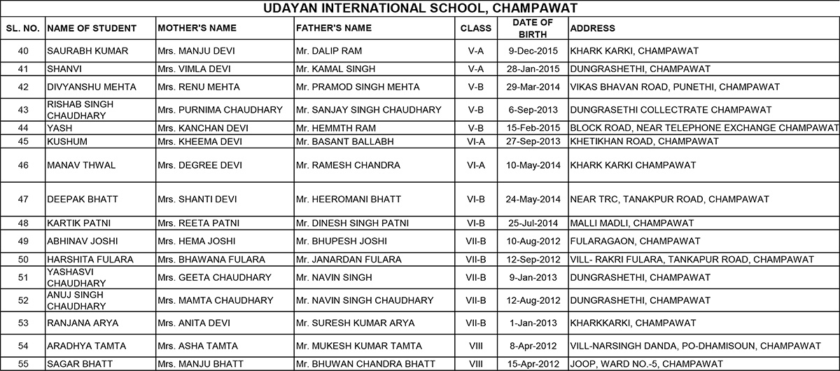 RTE Student's List